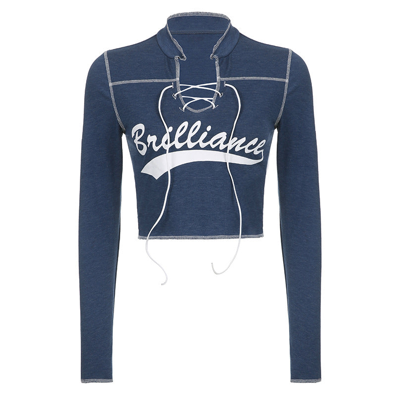 This Vintage Tie Front Stitch Details Crop Top exudes street style sophistication. Crafted from a premium blend of 95% cotton and 5% spandex, its flattering silhouette is accentuated with a chic logo print and delicate stitch details. An instant classic in timeless blue, this elegant crop top will elevate any urban ensemble.
