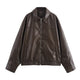 • Vintage Pu Leather Zip Up Bomber Jacket