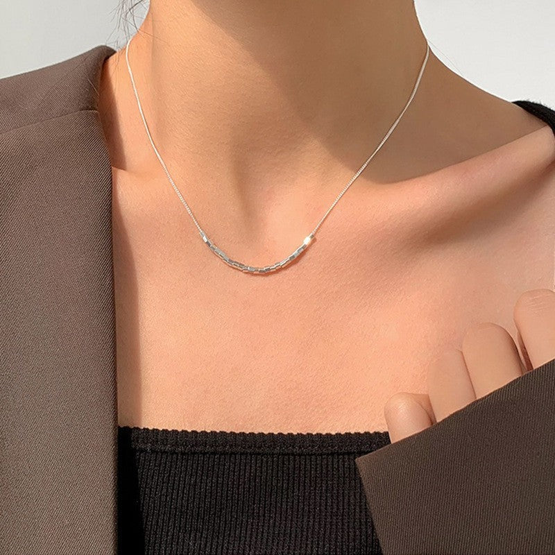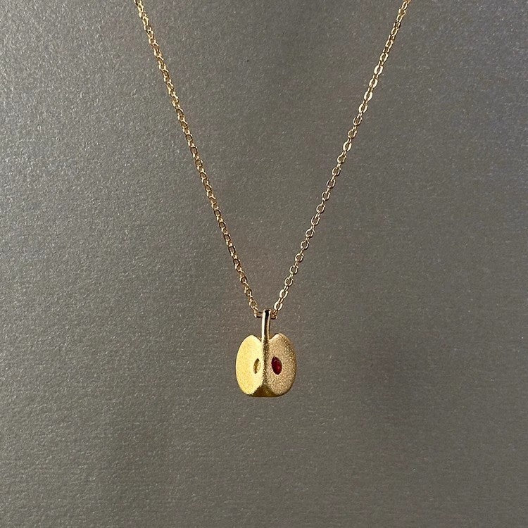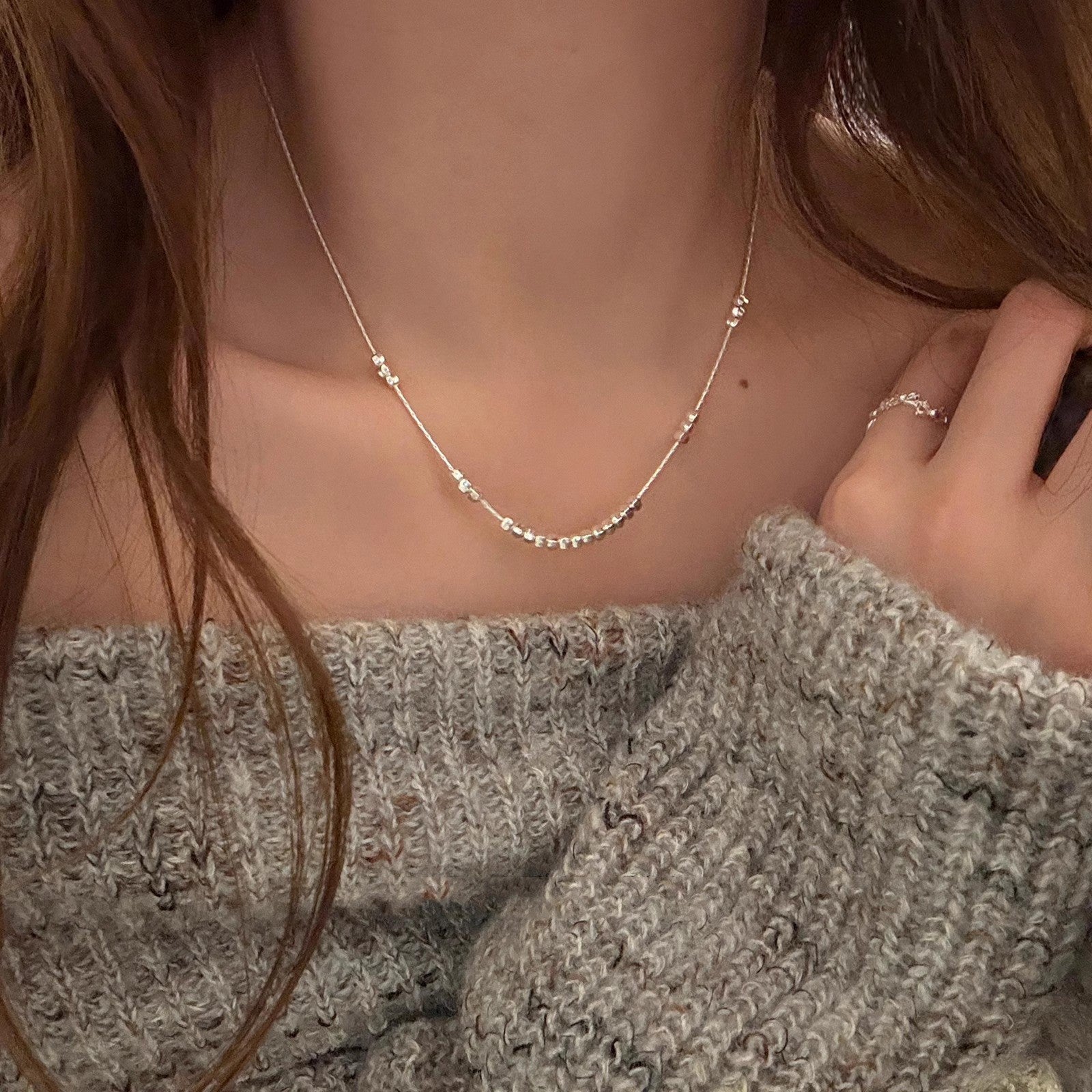 Necklace with a pendant worn by a person, close-up of the necklace on the neck.