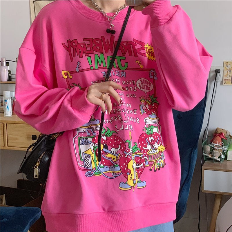 Strawberry Jam Print Oversized Sweatshirt