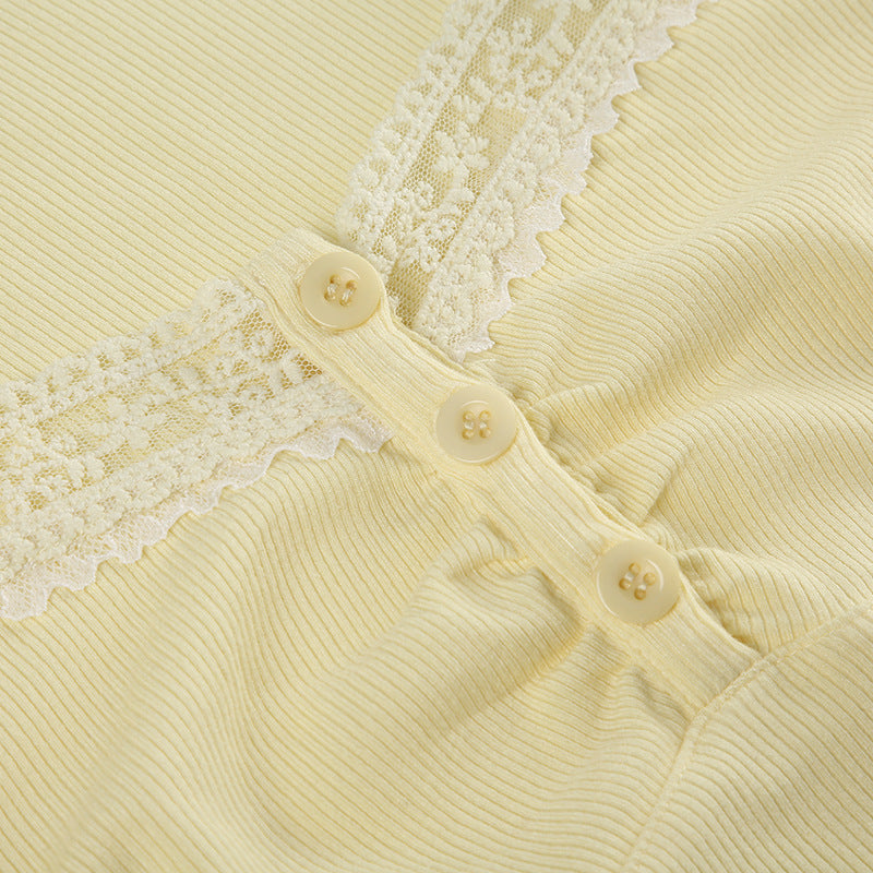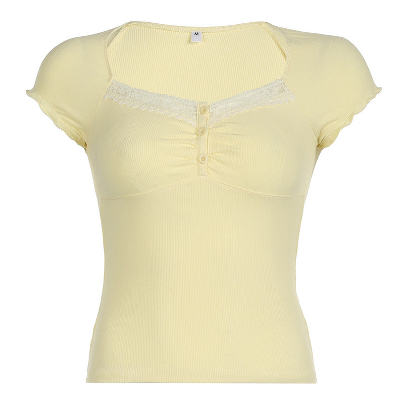Aesthetic Lace Trim Front Button Short Sleeve Tee