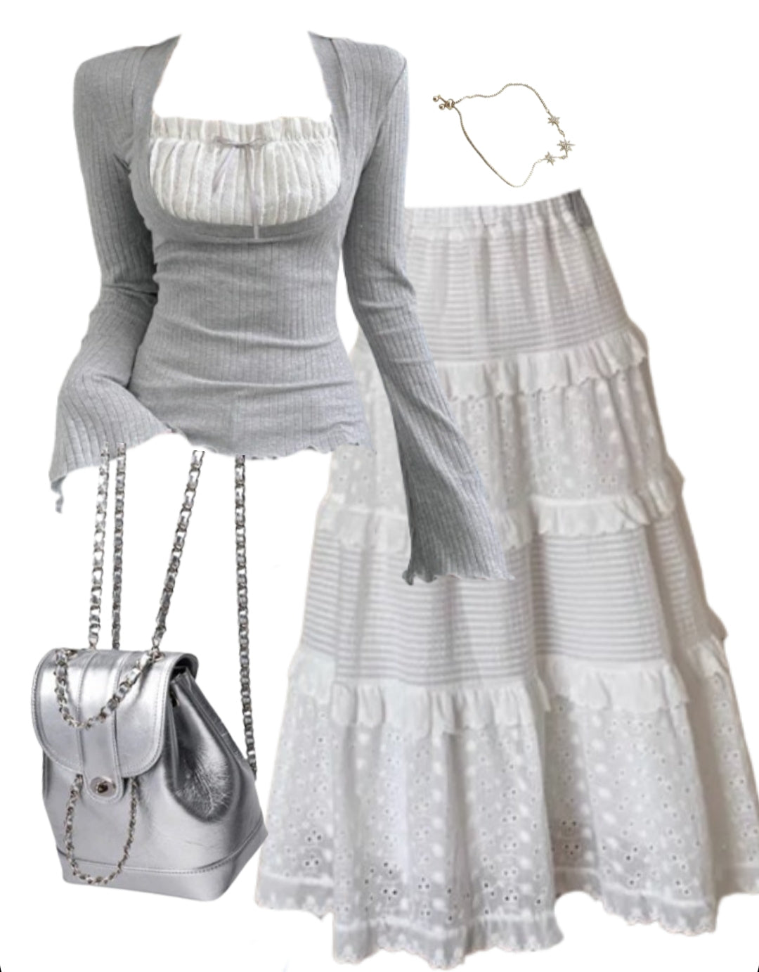 OOTD: Long Sleeve Tee + Patchwork Maxi Skirt + Pu Leather Backpack