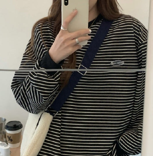 90s Striped Oversized Long Sleeve Tee