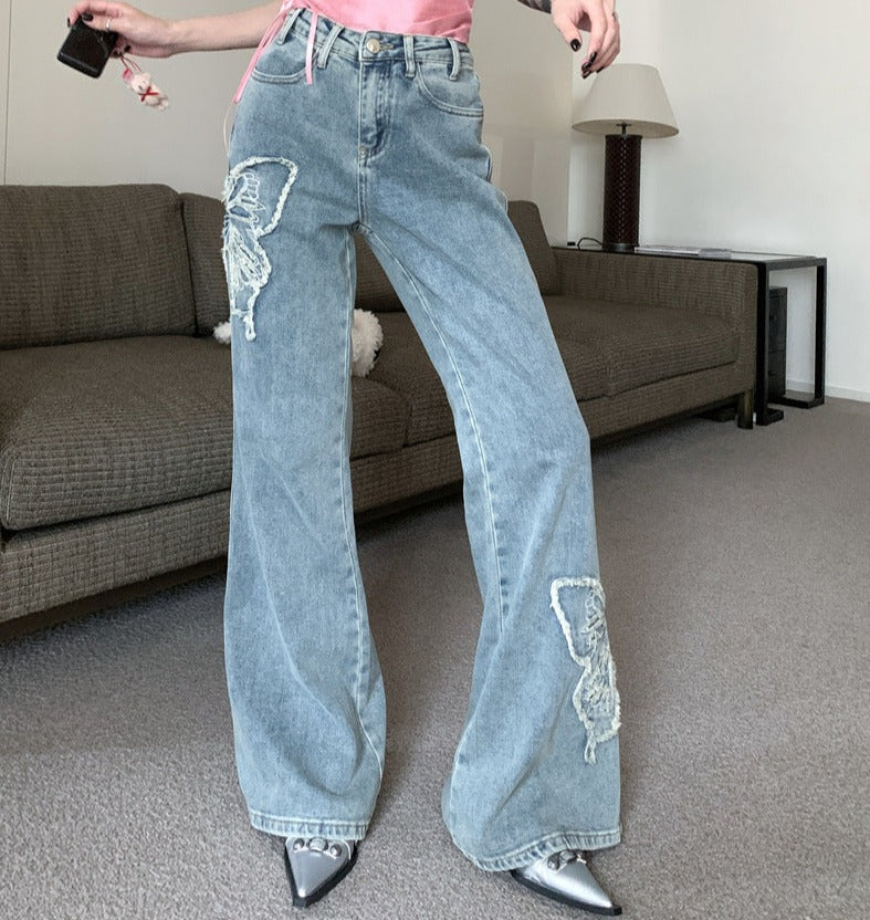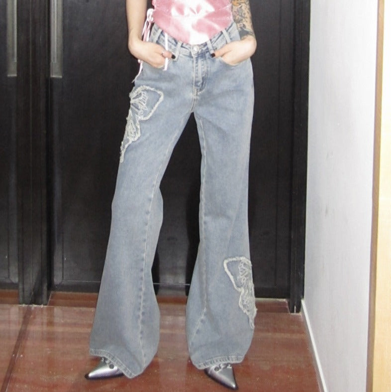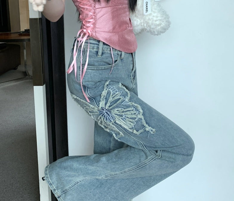 Unique Butterfly Embroidery: The butterfly pattern embroidery gives the jeans a beautiful vintage touch, making it a standout piece in any wardrobe.