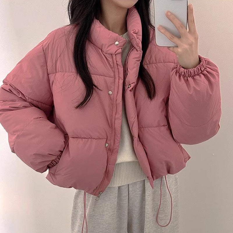 Solid Color Stand Collar Padded Coat