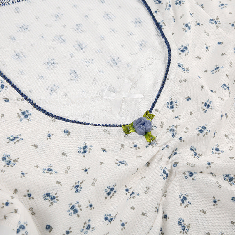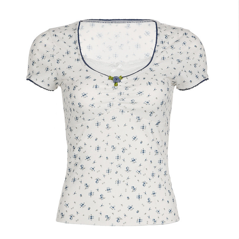 Aesthetic Lace Stitching Square Collar Short Sleeve Tee
