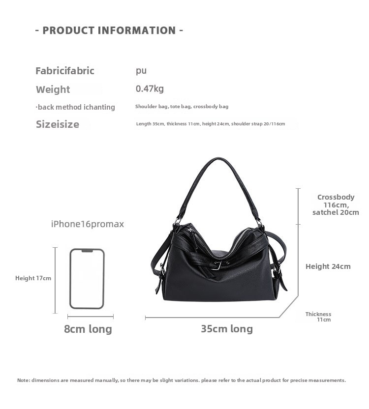 Versatile Wear: Crossbody, shoulder, and armpit carrying options for diverse styling