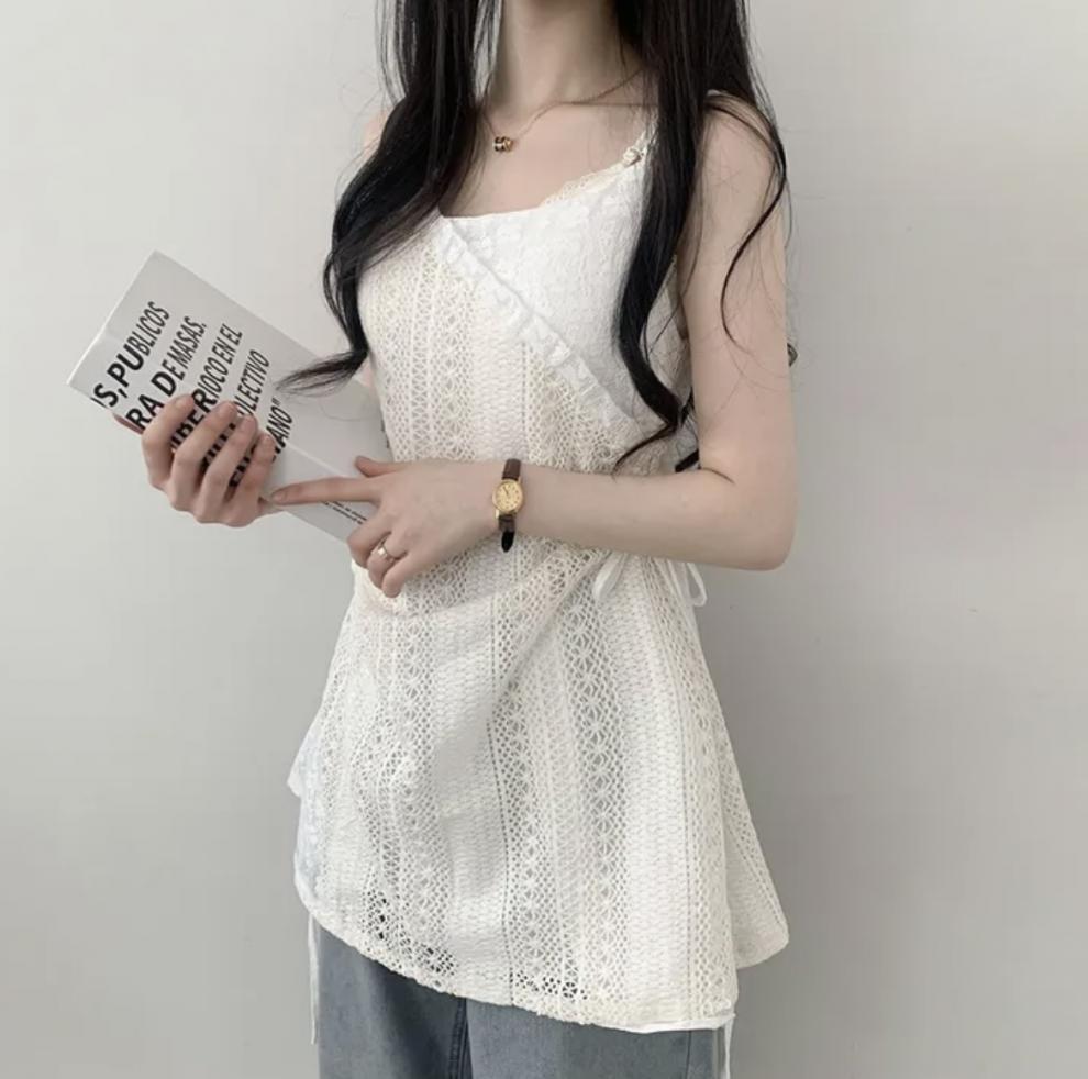 Tully lace side shirring layered bustier Blouse