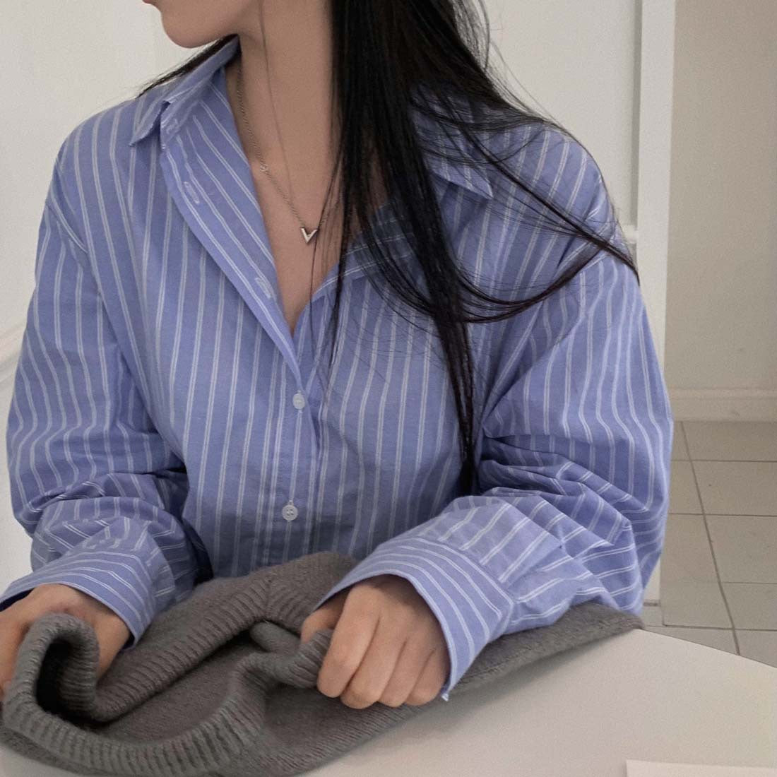 Vintage Striped Long Sleeve Loose Blouse