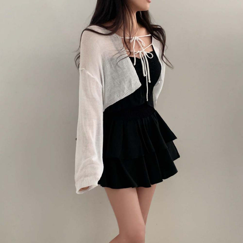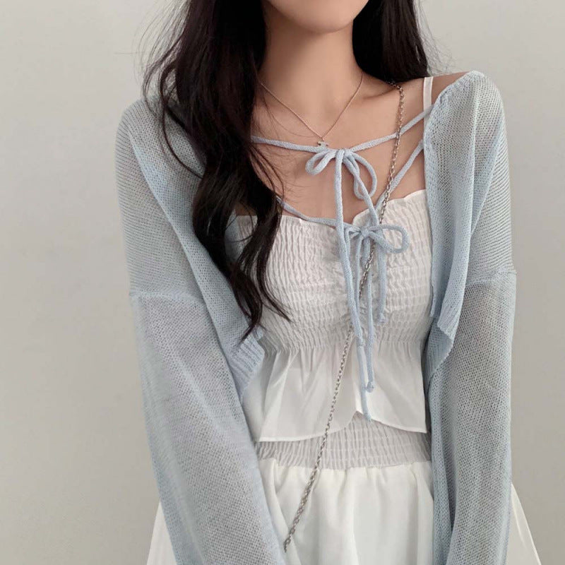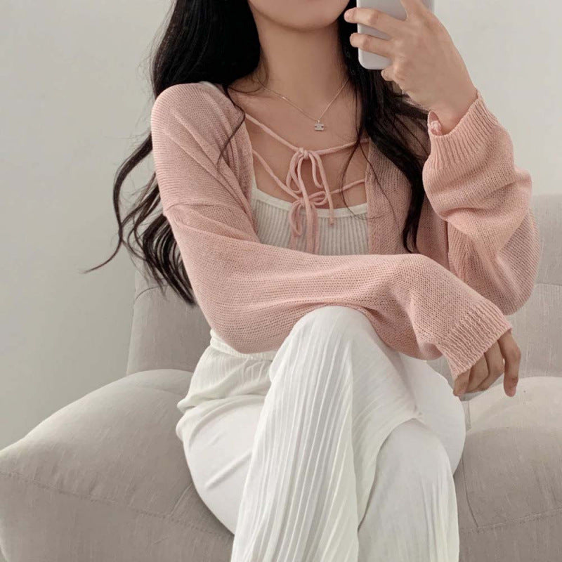 Aesthetic Shawl Tie-front Thin Long Sleeve Cardigan