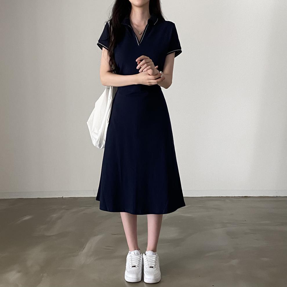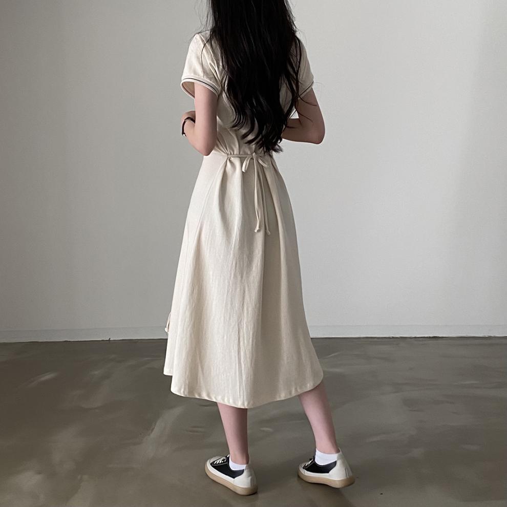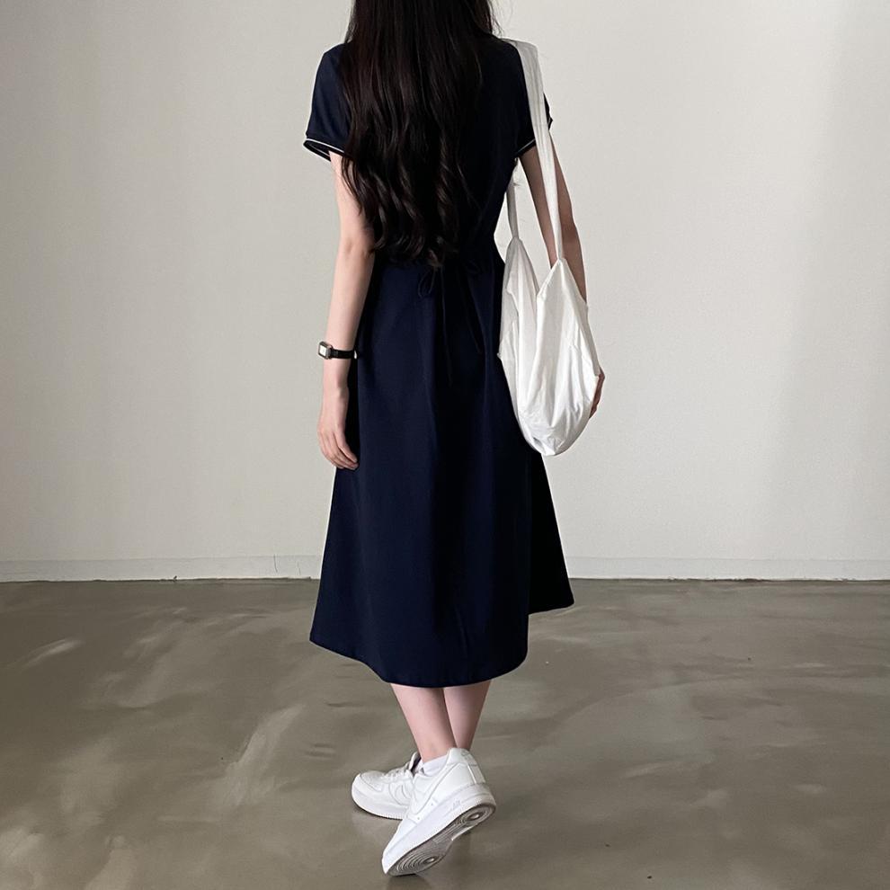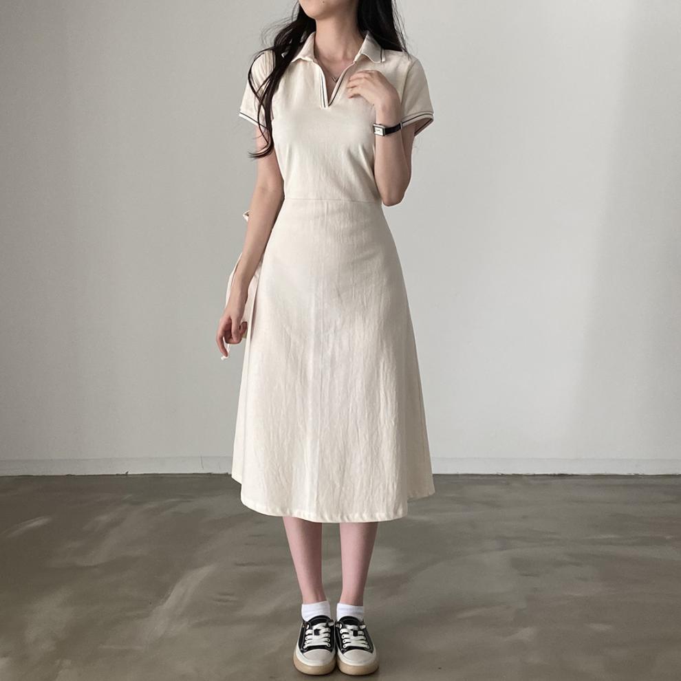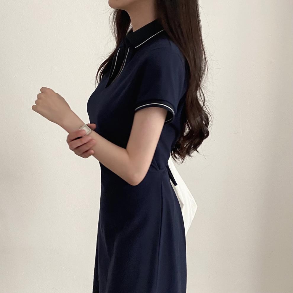 Korean Style Design: Features polo collar and back tie-up details for a cute, youthful aesthetic
