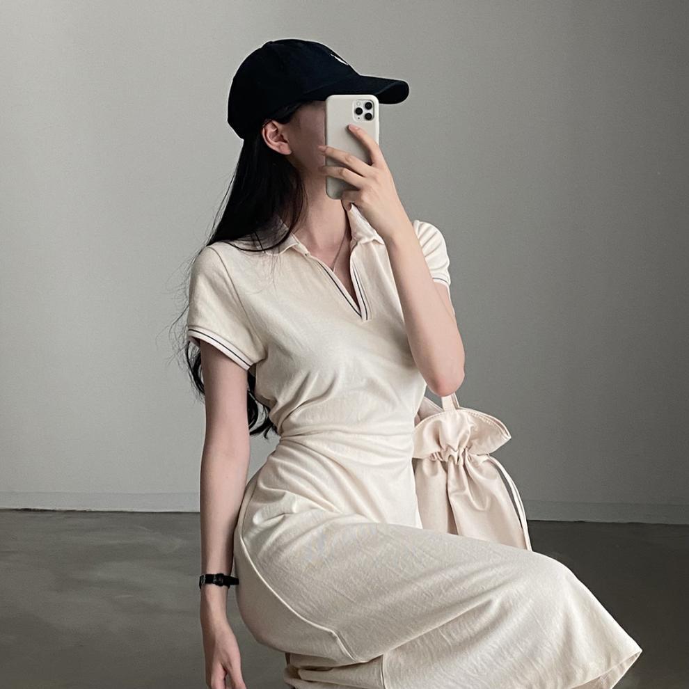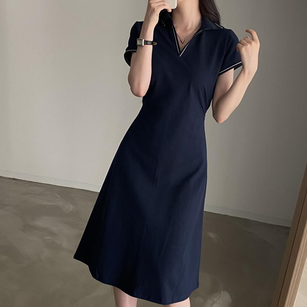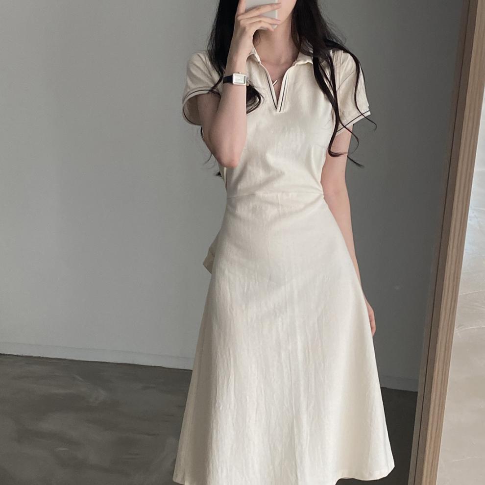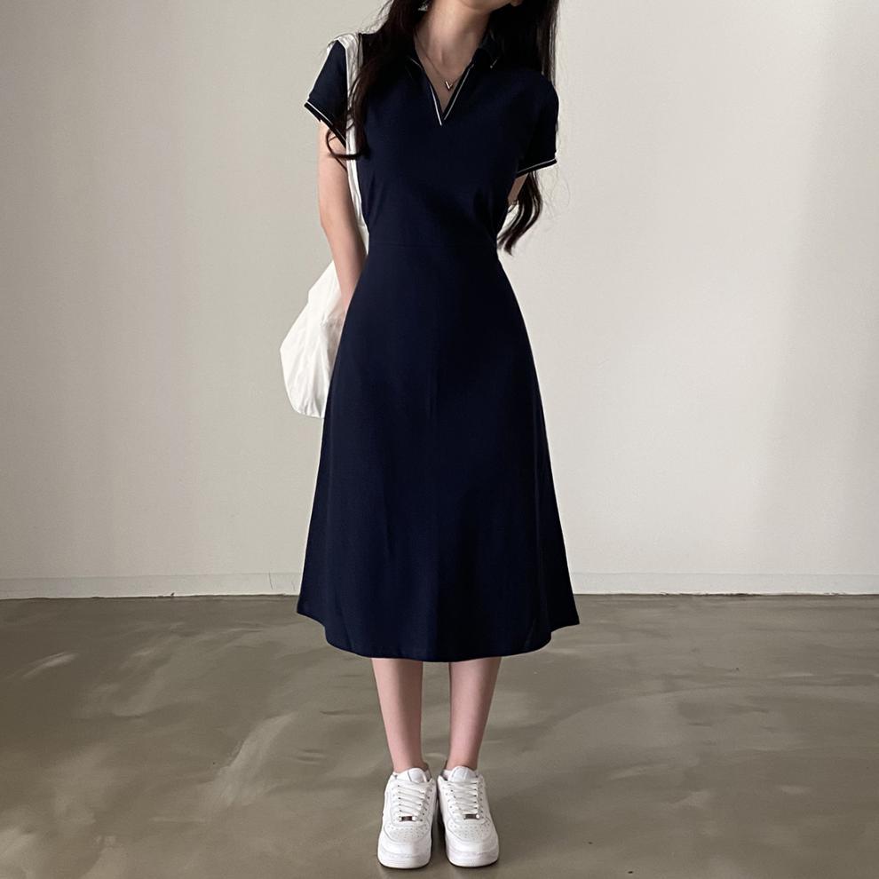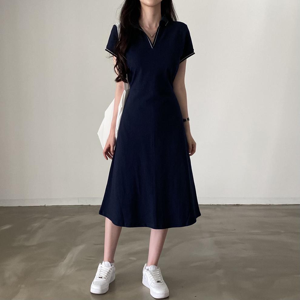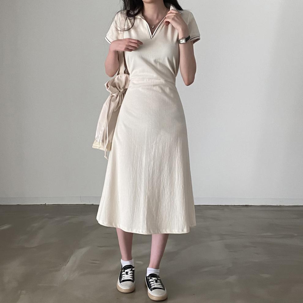 Korean Style Design: Features polo collar and back tie-up details for a cute, youthful aesthetic