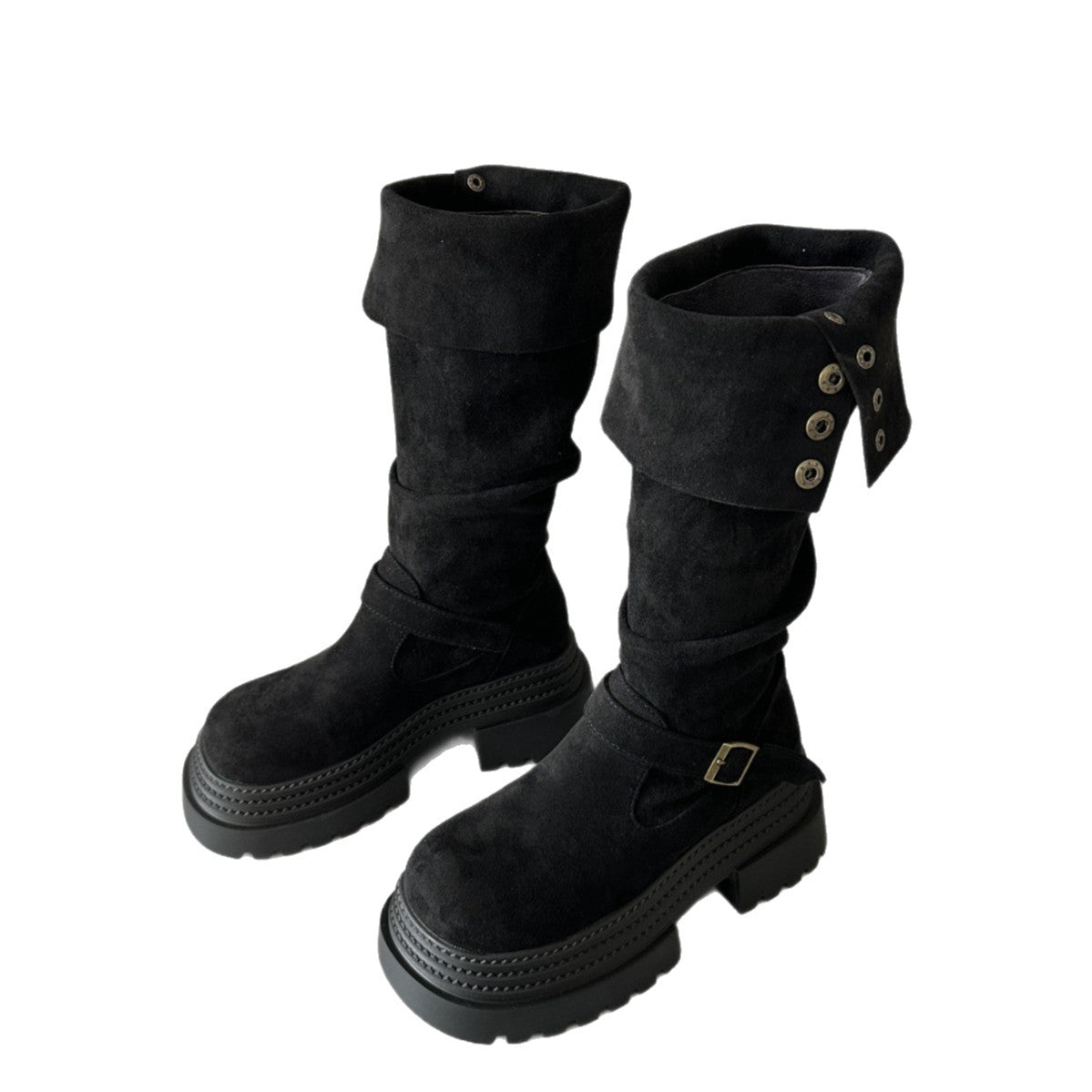 Retro Chunky Heel Belted High Boots