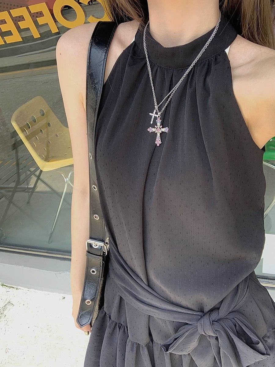 Style: Halter neck, sleeveless, A-line skirt
