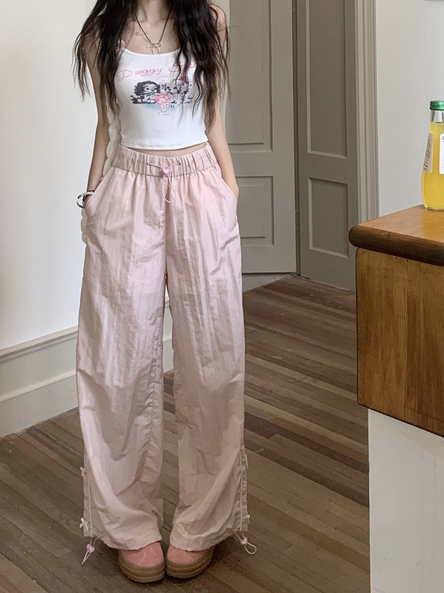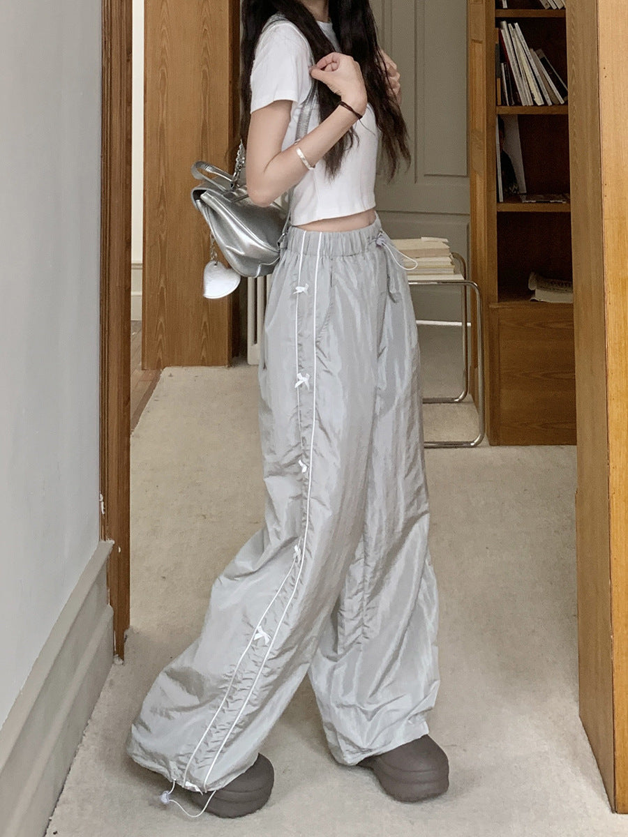 Piping Details Bow Baggy Sweatpants