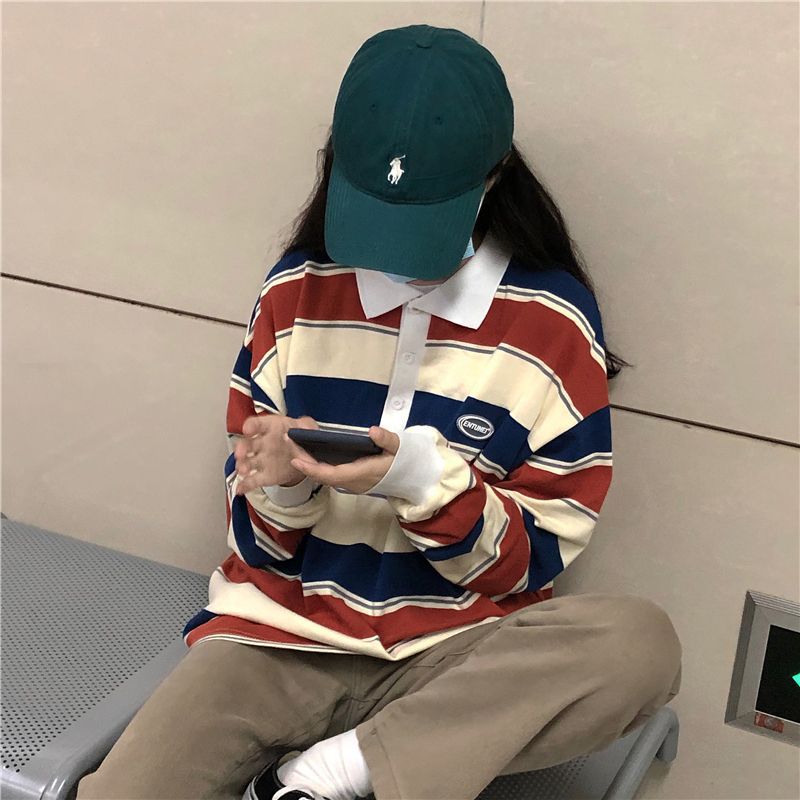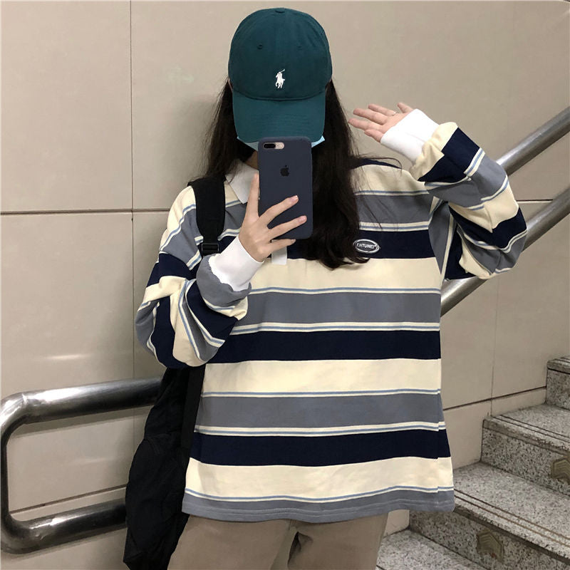 Introducing our Polo Collar Striped Oversized Long Sleeve Tee, a versatile wardrobe essential available in stylish gray and red hues. Crafted from premium sheepskin, this tee combines comfort and durability. With a range of sizes from XXXS to 2XL, and extra-long sleeves, it caters to diverse body types. The timeless striped pattern and Polo collar add a touch of vintage, 90's, casual, and preppy styles to your look. Elevate your fashion game with this must-have tee that seamlessly blends comfort and on-trend aesthetics.