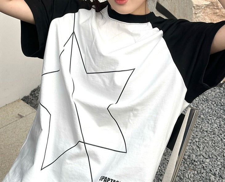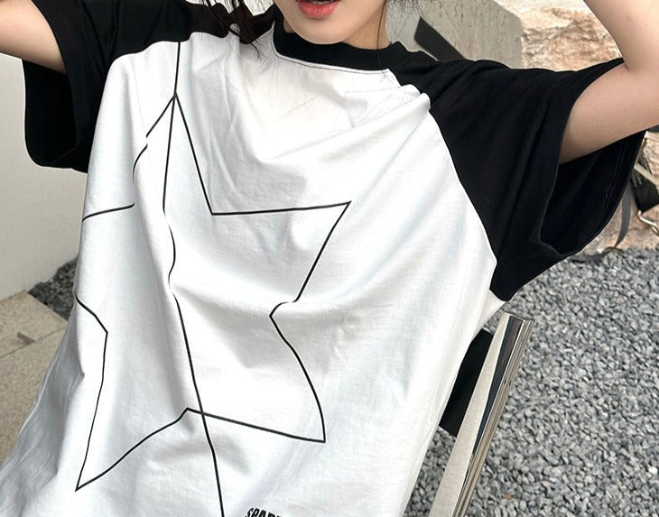 Star Print Raglan Short Sleeve Oversized Tee