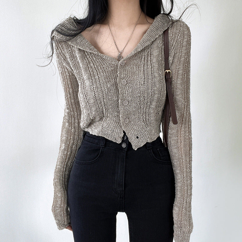 Vintage V-Neck Long Sleeve Knitted Cardigan