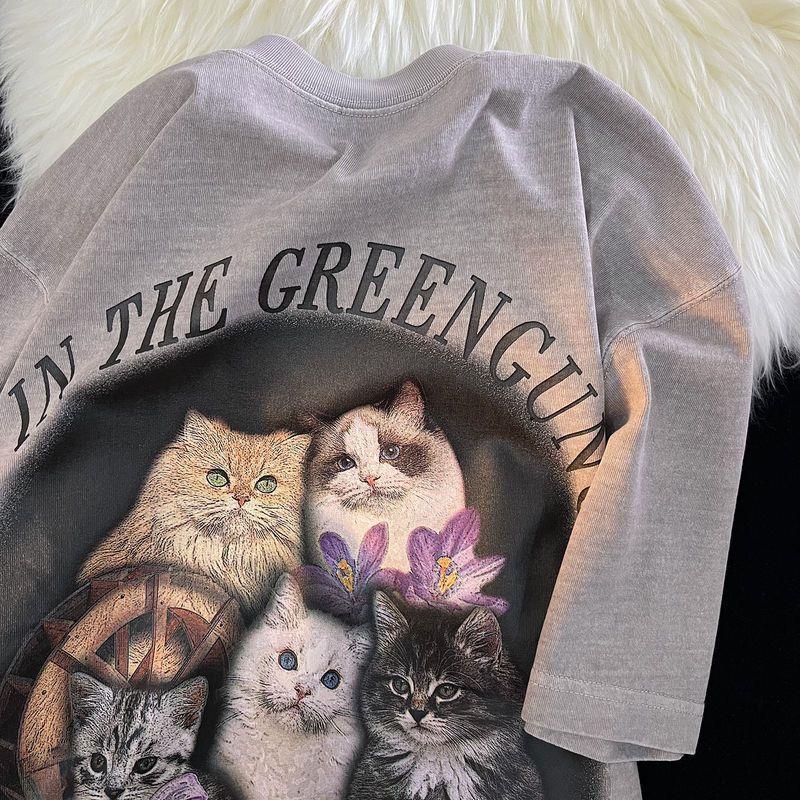Vivid Cat Print Oversized Short Sleeve Tee
